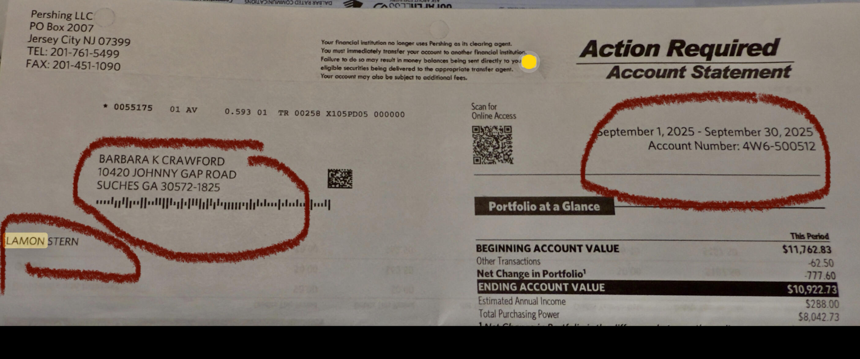 Why is Barbara still receiving Pershing statements and utility bills one year after her death?